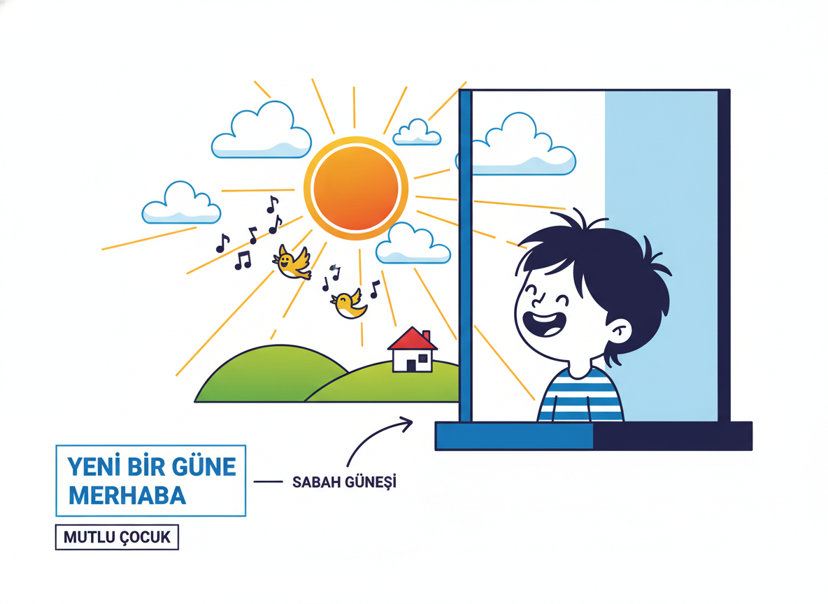 Sabahleyin uyanan bir çocuk, pencereden dışarı bakıyor ve güneşin doğduğunu görüyor. Annesine veya babasına hangi selamlaşmayı söyler?![]()